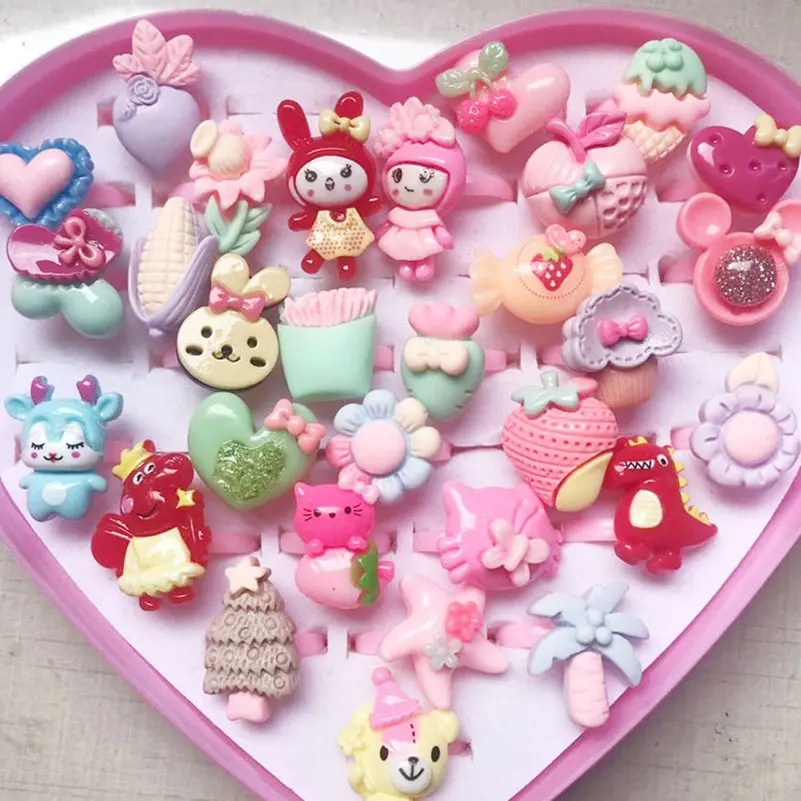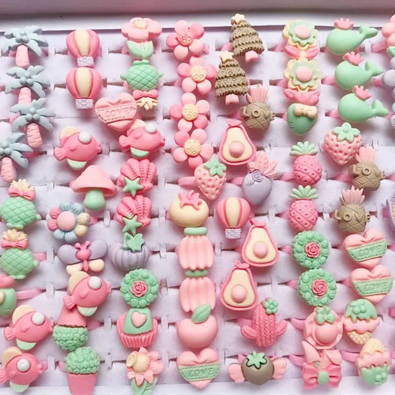 10pcs Children Cartoon Rings Candy Fruit Flower Animal Mix Multicolor Finger Jewelry Rings Kids Girls Gift